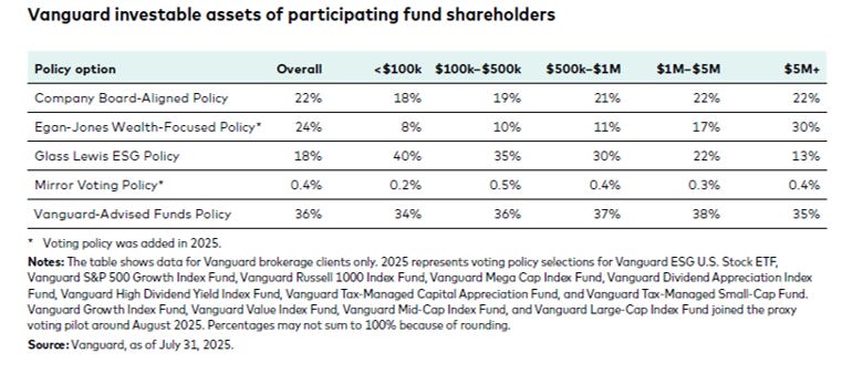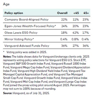 Les résultats détaillés de la saison 2025 de Vanguard Voting Choice sont ici.
